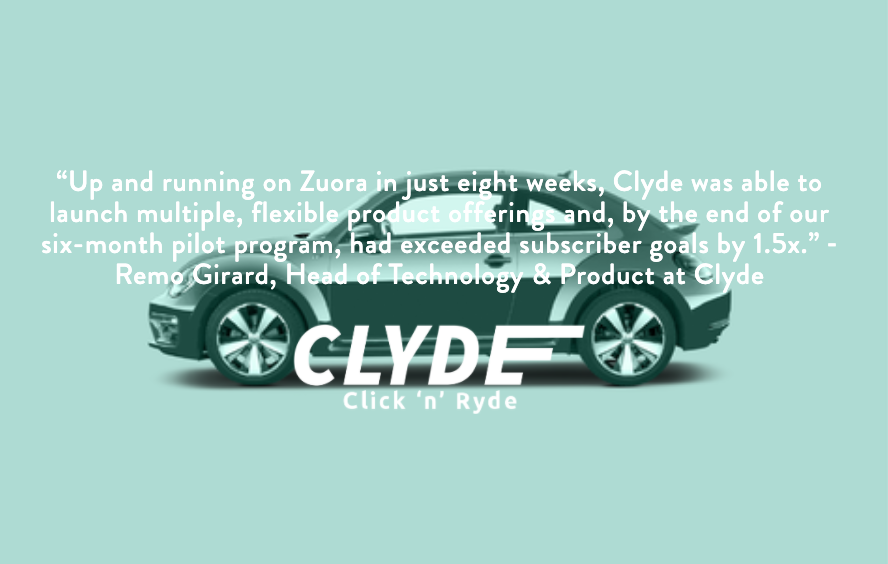 Learn how after only 8 weeks on Zuora, Clyde was able to launch multiple product offerings and exceed subscriber goals for their 6-month mobility pilot program by 1.5x.