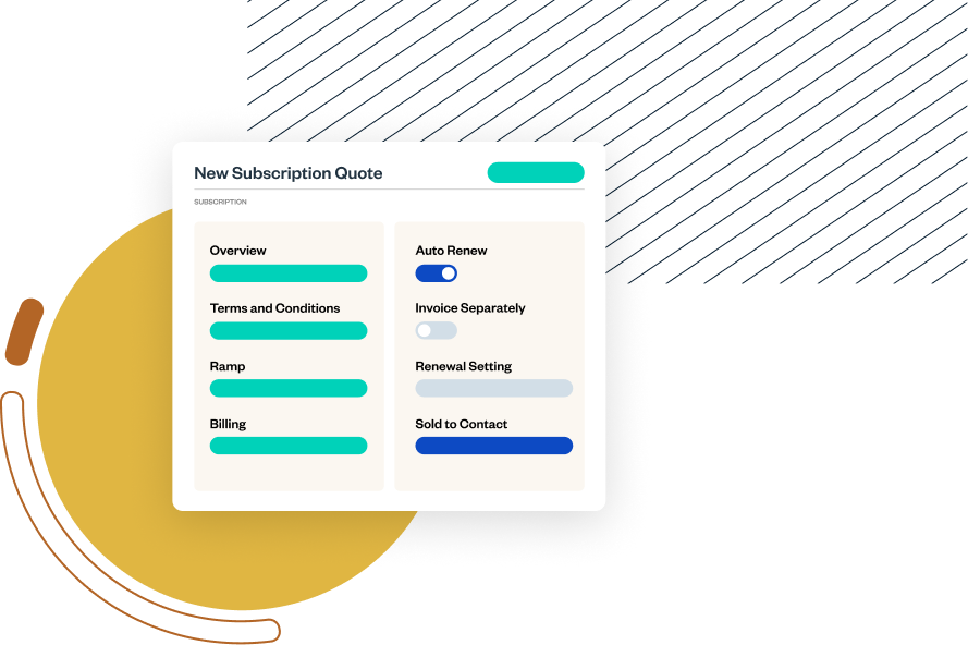Die Angebotserstellung für Abonnements unterscheidet sich von der für Produkte. Bei einem Abonnement benötigen Sie die Möglichkeit, alle dynamischen Aspekte eines Deals – wie Funktionen, Preise und Abrechnungszeitpunkte – anzupassen, anstatt lediglich die aufeinanderfolgenden Merkmale eines einfachen Produkts zu konfigurieren.