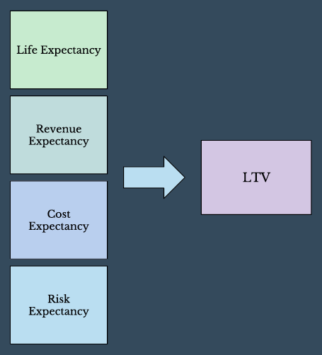 LTV is an estimate of customer value in the future. Risk expectancy helps you make a better guess by considering the money you could potentially lose from your future revenue streams for a variety of reasons. And it’s because of risk expectancy that we recommend underestimating the lifetime value of your customers. Why?