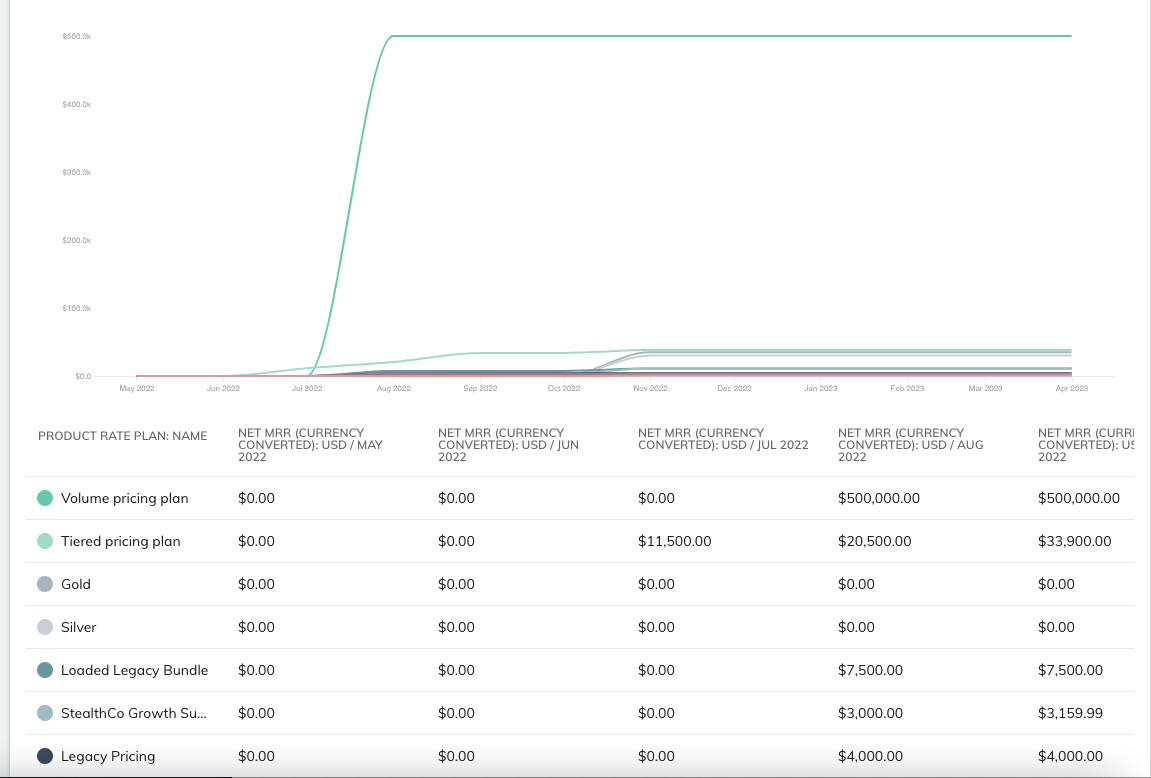 Good CPQ tools provide rich real-time reports where you can slice and dice data into powerful views like Monthly Net MRR by rate plan to see what plans are performing best.