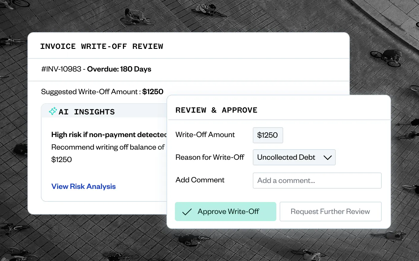 適格性を評価し、償却金額と理由コードを推奨し、人による承認のもとで実行するためのエクスポート可能な根拠を生成するAIにより、監査可能性を損なうことなく滞留請求書のクローズを迅速化します。