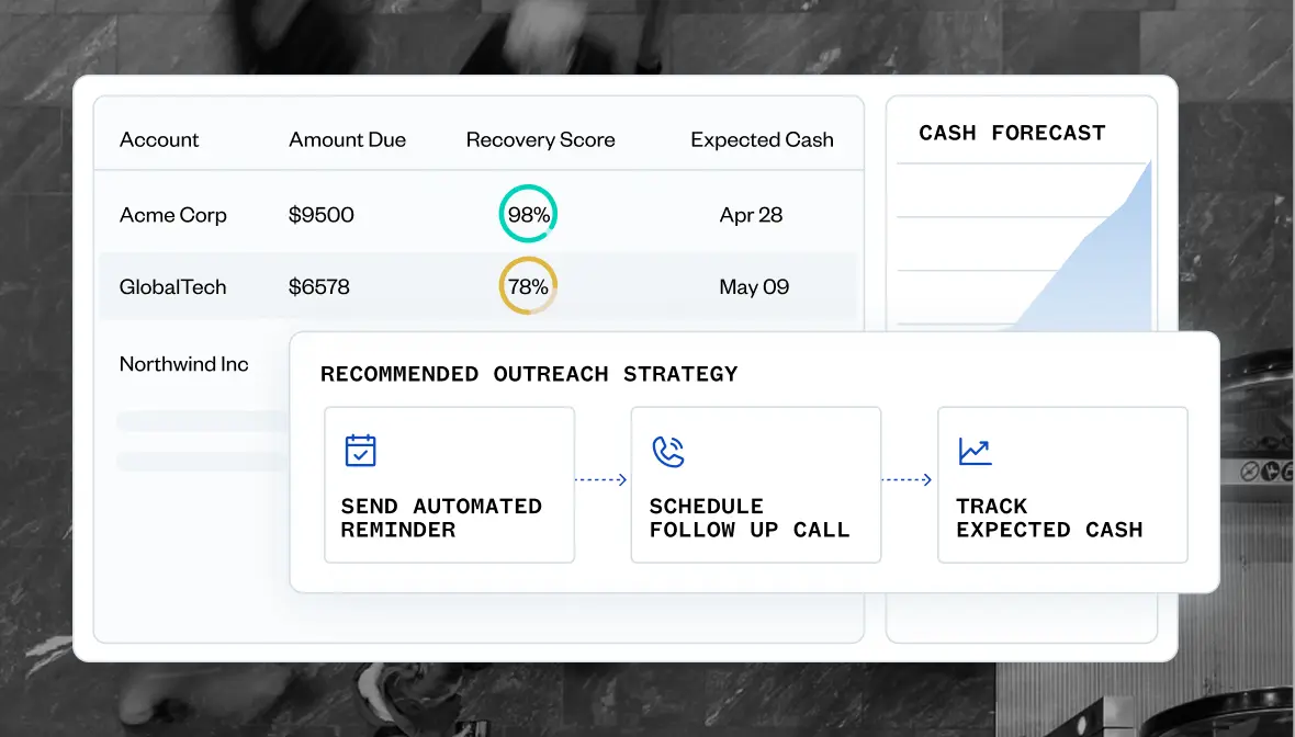 回収見込み(回収確率)に基づいてアカウントの優先順位を付け、アプローチ戦略を推奨し、回収担当者のアクションを期待される入金結果に結び付けます。