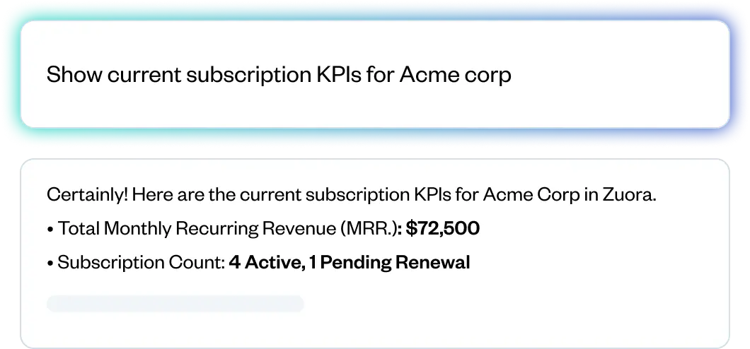 承認済みのLLM内でリアルタイムのQuote-to-Cashデータを安全に可視化し、財務部門が平易な言葉で質問しても、Zuoraテナントに基づく構造化されたコンテキスト対応の回答を得られるようにします。