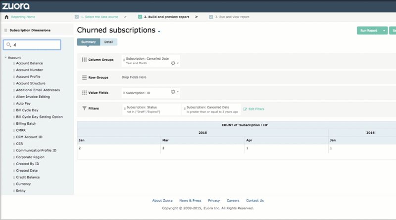 サブスクリプション・ビジネスにおいて、各種のKPIを算出するのは大変困難です。Zuoraは主要なKPIを自動で生成し、また顧客の利用状況をもとに解約、アップセルなどの兆候を把握することができます。Zuoraは顧客の契約に関する情報と、利用状況などの動向を組み合わせて分析ができる唯一のソリューションです。