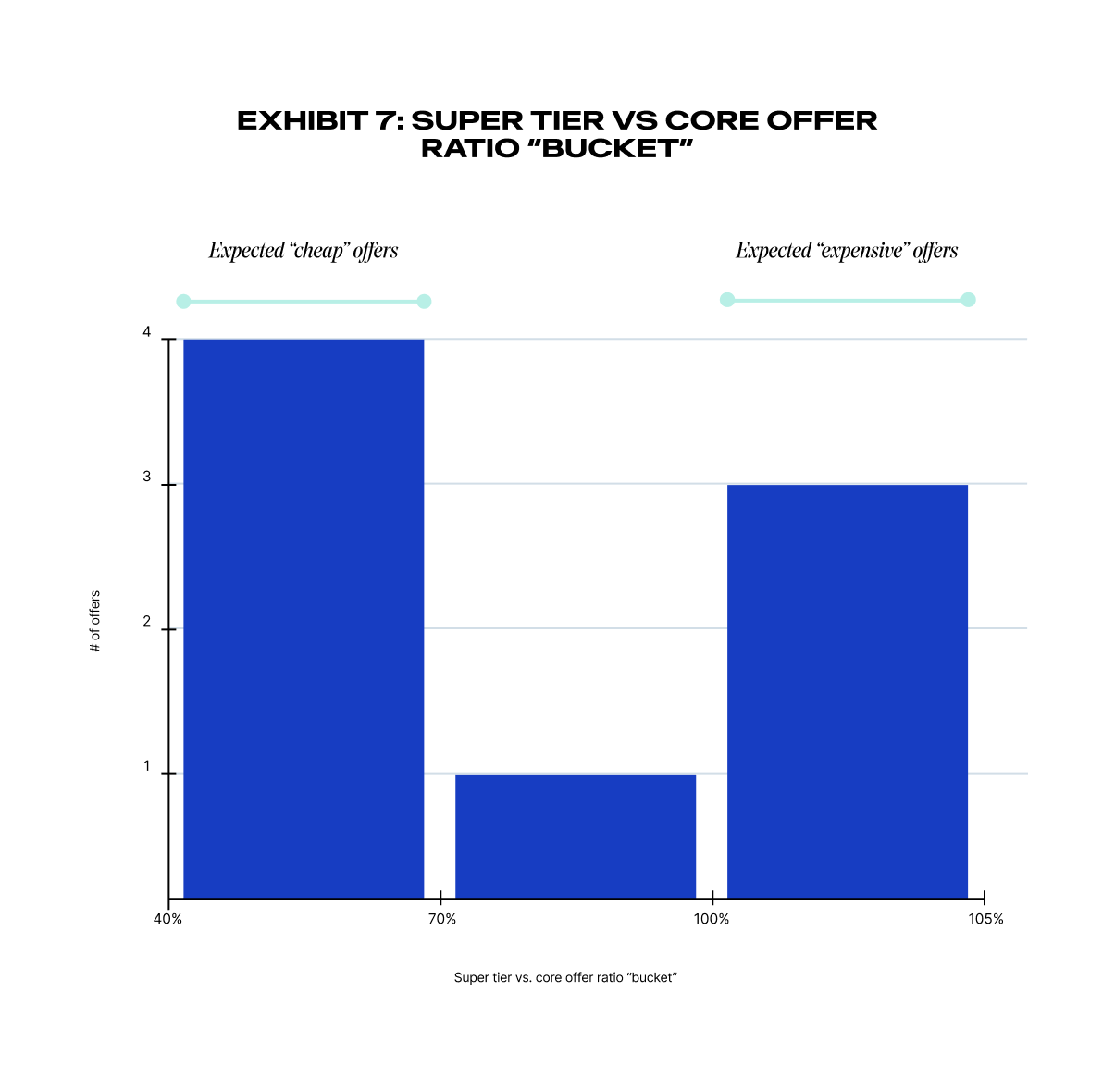 2つ目の図では、両端が想定内の範囲に収まる、狭いレンジでの明確な二峰性分布が示されています(図 7)。全体として、上位ティアにおける生成AIプレミアムの平均は、アドオンで見られるプレミアムよりも低く、これは予想外の結果です。