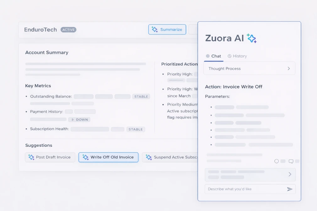 Invoice write-offs are one just one example. The same foundation powers AI across Zuora’s quote-to-cash workflows — bringing the right context into view, recommending the next step, and executing within the controls finance already trusts.