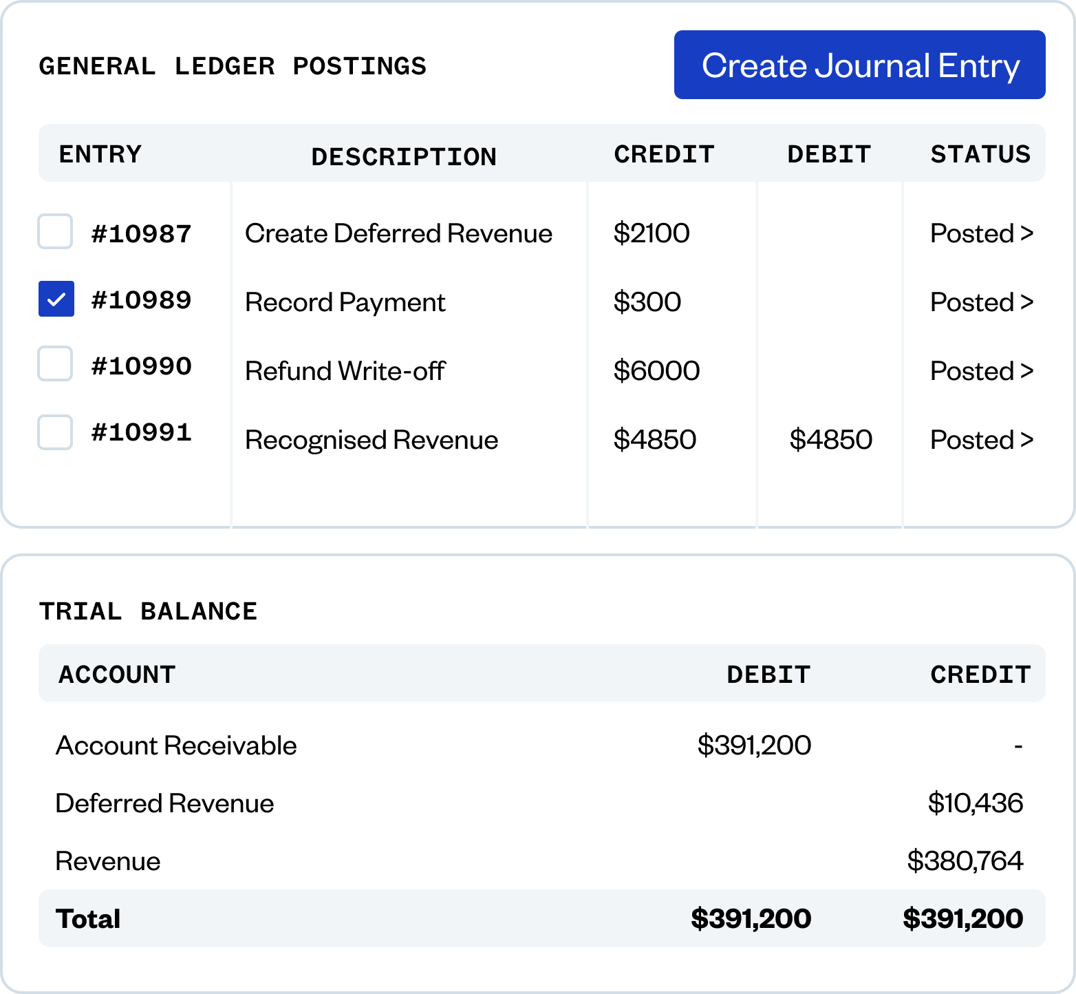 Policy‑driven accounting with auditable journals that feed the GL and finance‑grade controls for multi‑entity and FX.